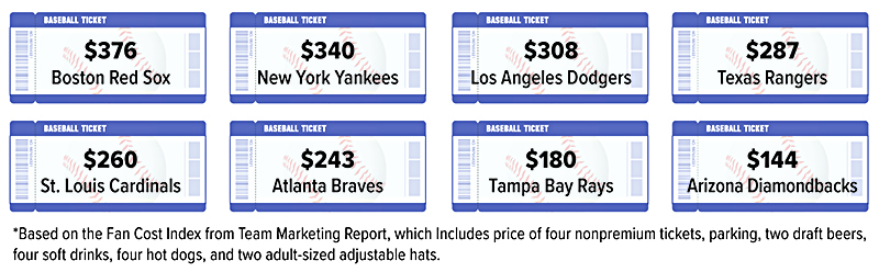 The average cost of taking a family of four to a Major League Baseball game during the 2021 season was $253. Costs varied across the league, with Red Sox fans paying the most and Diamondbacks' fans paying the least.*