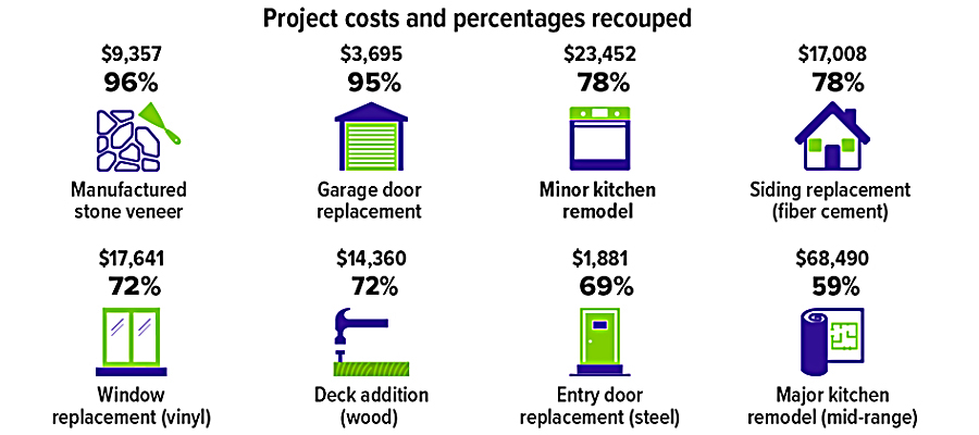 Sources: Joint Center for Housing Studies of Harvard University, 2020; 2020 Cost vs. Value Report, Remodeling magazine (national averages)